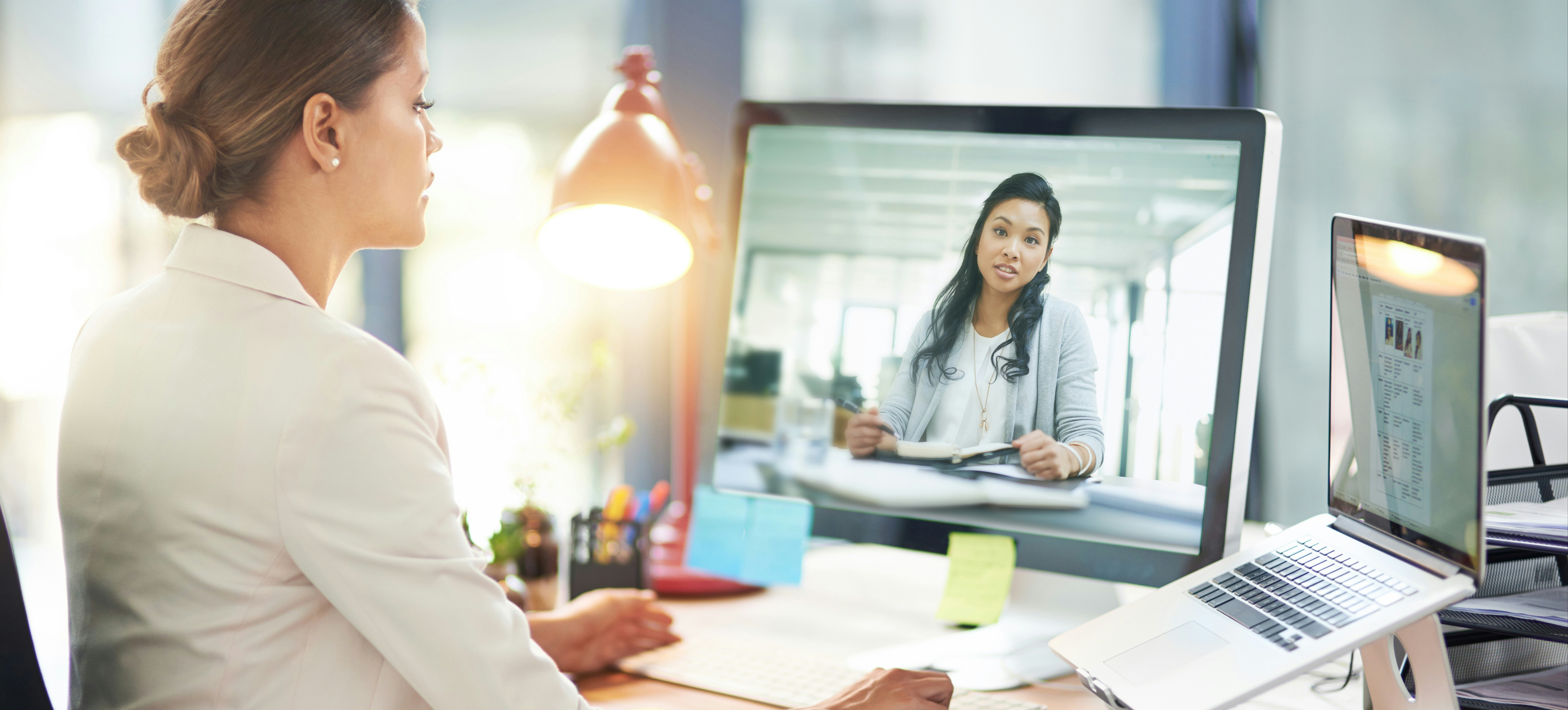 [Featured Image] Two colleagues discuss transfer learning from large language models during a video chat.