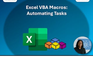 This course now features Coursera Coach! A smarter way to learn with interactive, real-time conversations that help you test your knowledge, challenge assumptions, and deepen your understanding as you progress through the course. Dive deep into Excel VBA with this comprehensive course that will take you from beginner to advanced levels in no time. Starting with the fundamentals, you'll learn how to activate the VBA environment in Excel, code basic commands like MsgBox, and record macros to automate repetitive tasks. You’ll also explore the Developer Toolbar and use essential properties like Offset and Resize to manipulate Excel cells programmatically. As you progress, the course focuses on mastering variables, performing calculations, and handling various data types crucial to effective coding. You’ll dive into conditional statements, including If-Else and Select Case, which will help you build logic into your code, making it dynamic and responsive. A thorough exploration of string functions, loops, and arrays will equip you to process and manipulate data efficiently, while hands-on exercises consolidate your learning. Finally, you’ll learn how to create custom subroutines and functions to make your workflows even more streamlined. Whether it’s automating data entry, generating reports, or managing vast datasets, this course ensures you have the skills needed to supercharge your Excel performance through VBA, ultimately saving you valuable time and boosting productivity. This course is ideal for intermediate to advanced Excel users looking to enhance their productivity by learning VBA. A basic understanding of Excel functions and formulas is recommended, but no prior programming experience is required.