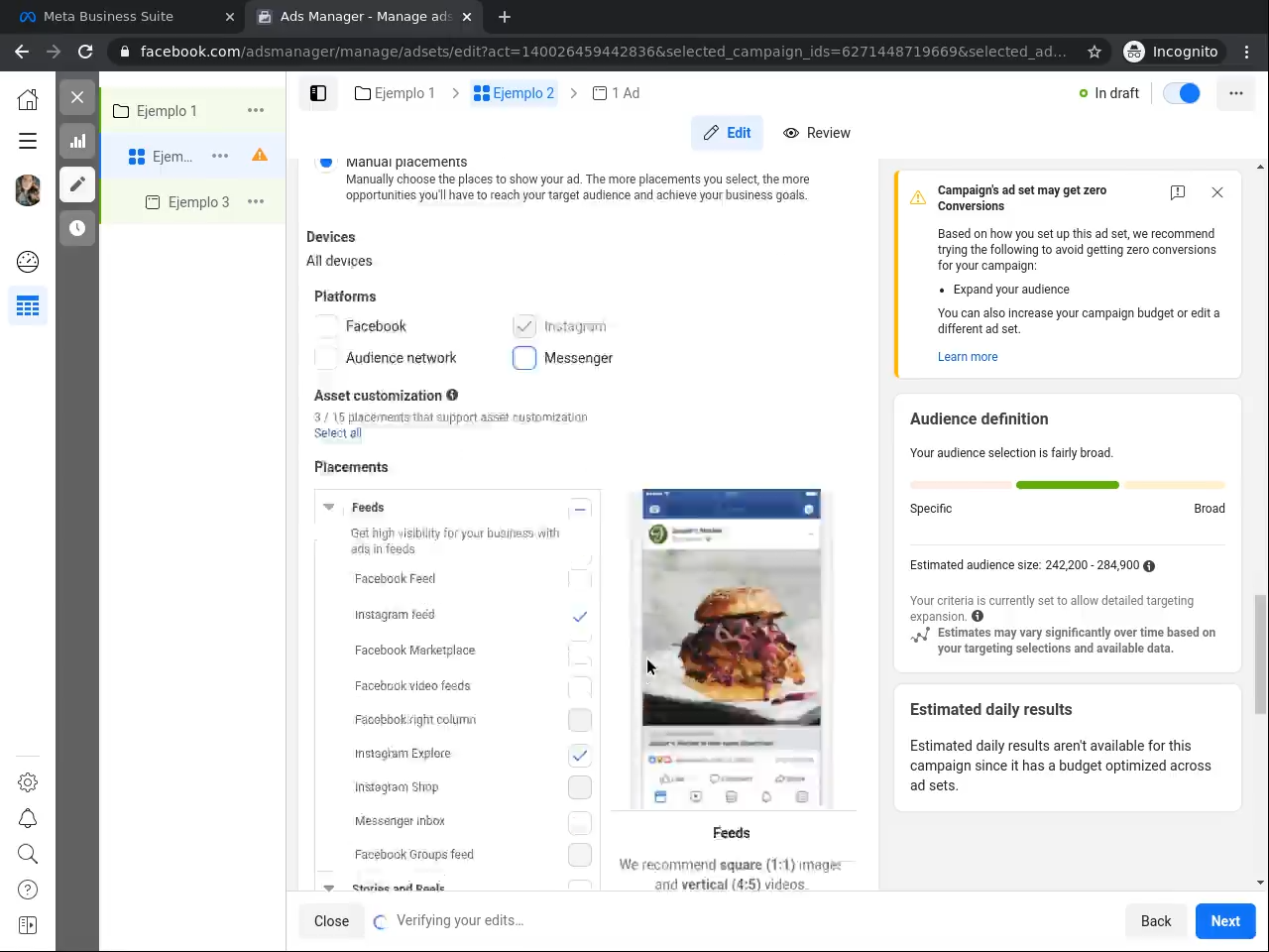 3. Desarrolla tu primer conjunto de anuncios para Instagram usando el Administrador de cuentas
