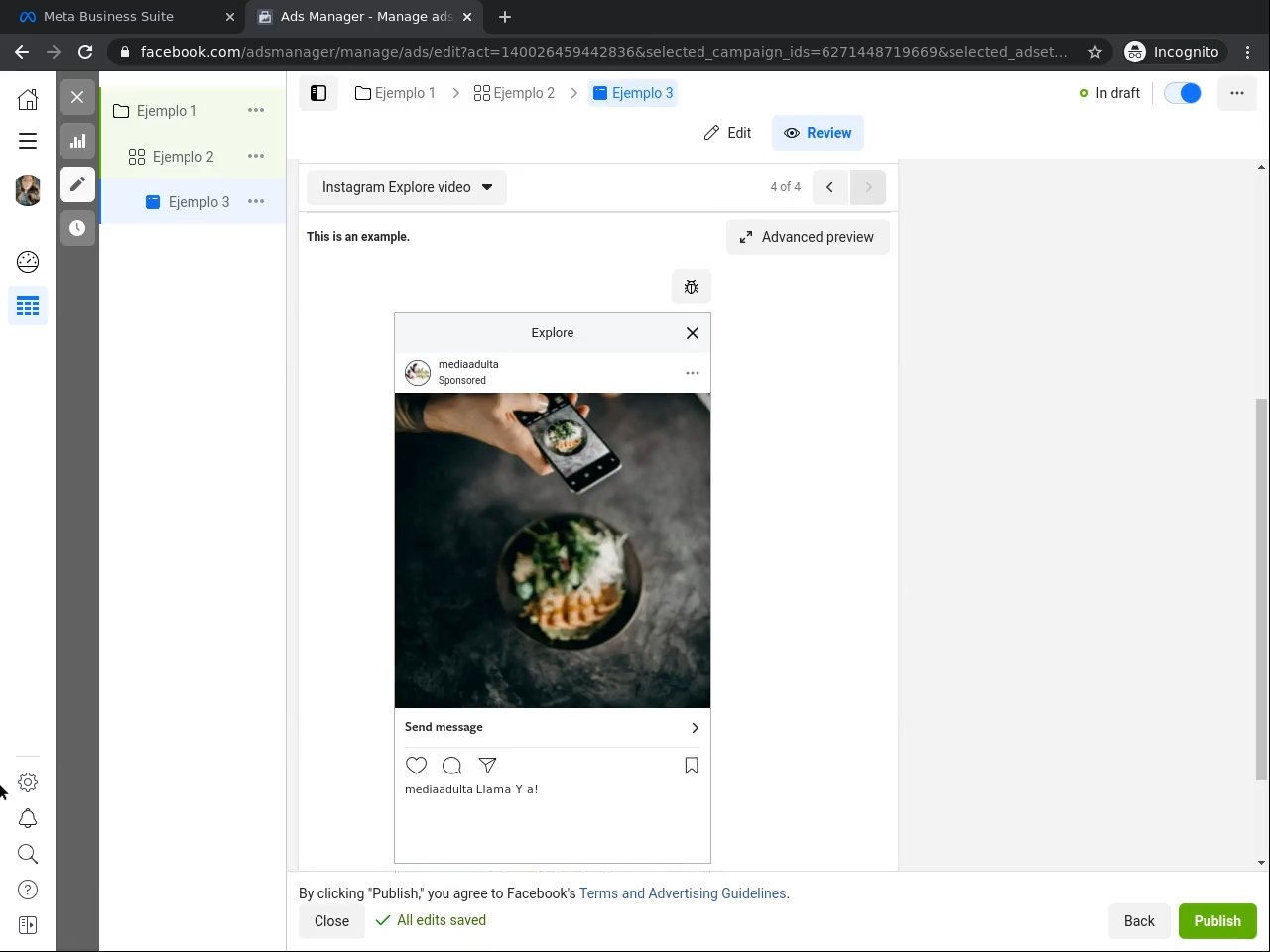 4. Trabaja tu primer anuncio para Instagram usando el Administrador de Cuentas