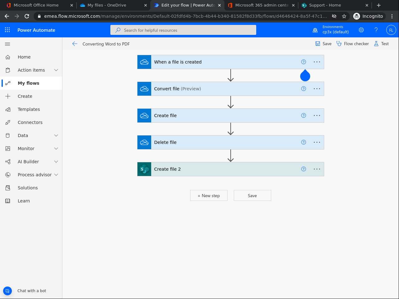 Create a flow that converts Word to PDF and uploads it to SharePoint