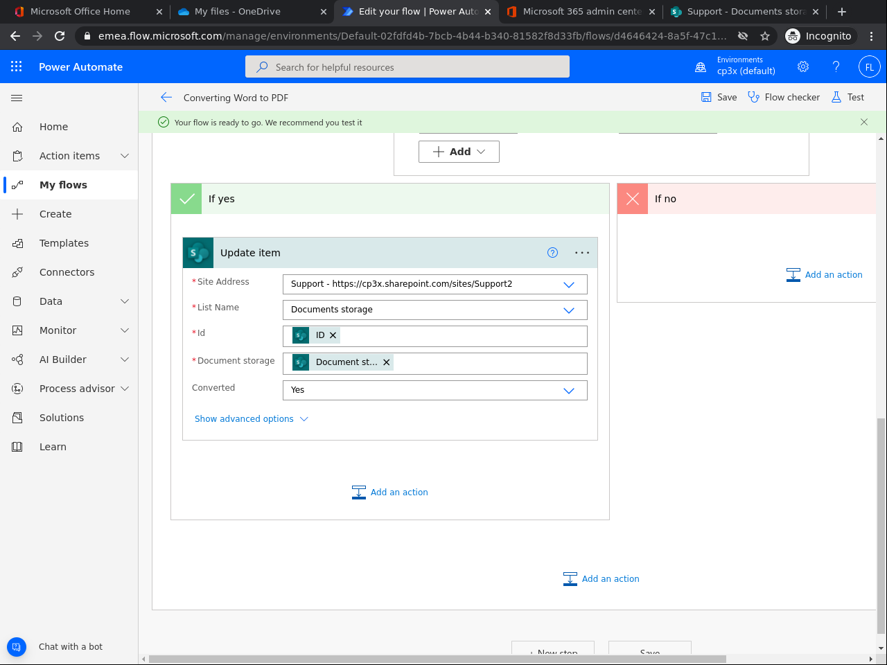 Create an Automated flow that converts Word to PDF and uploads document to SharePoint