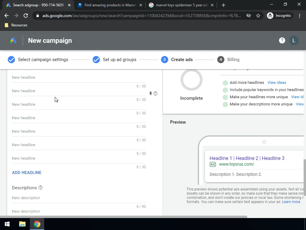 Create a structured Google Ads Search Campaign