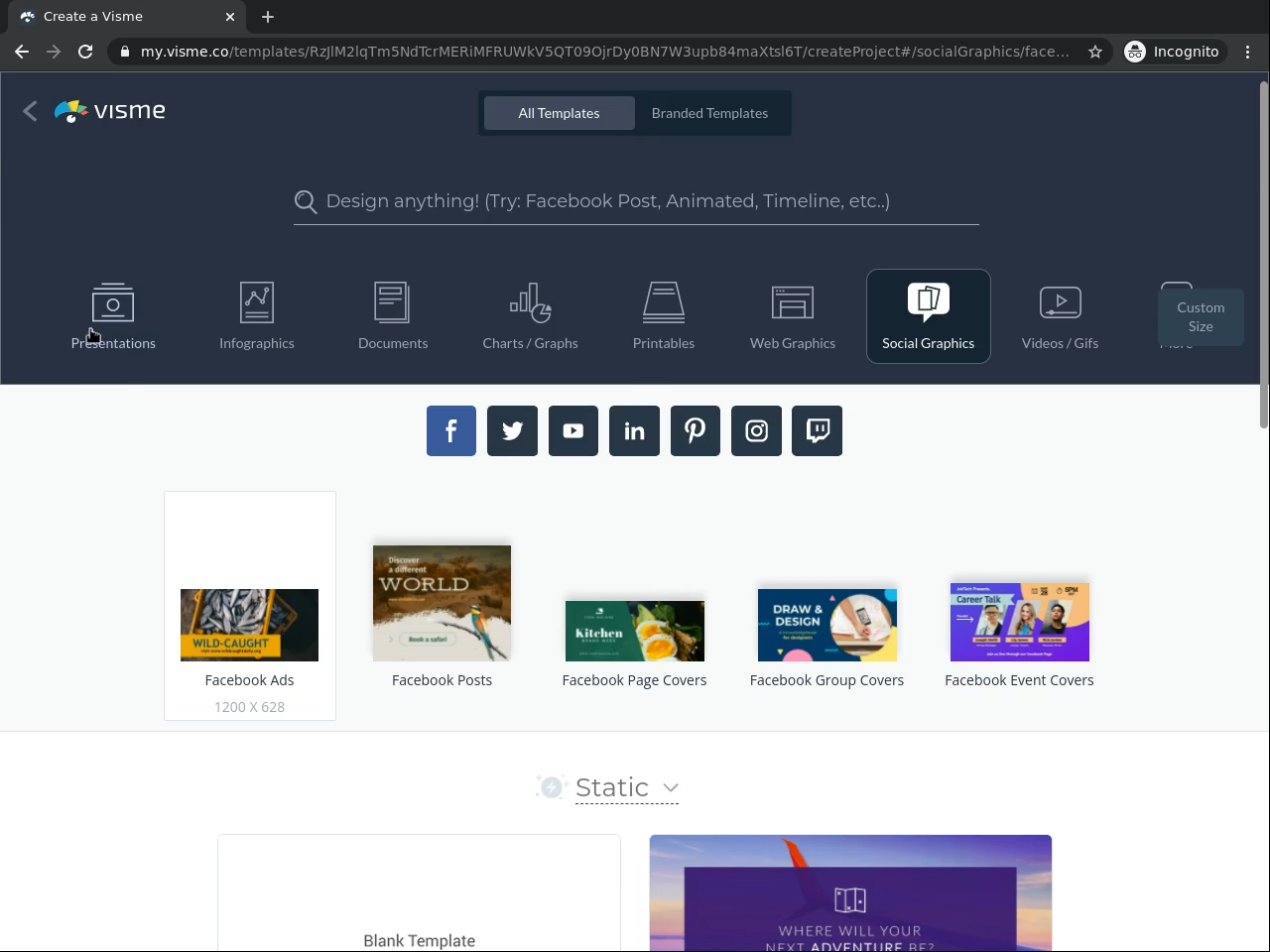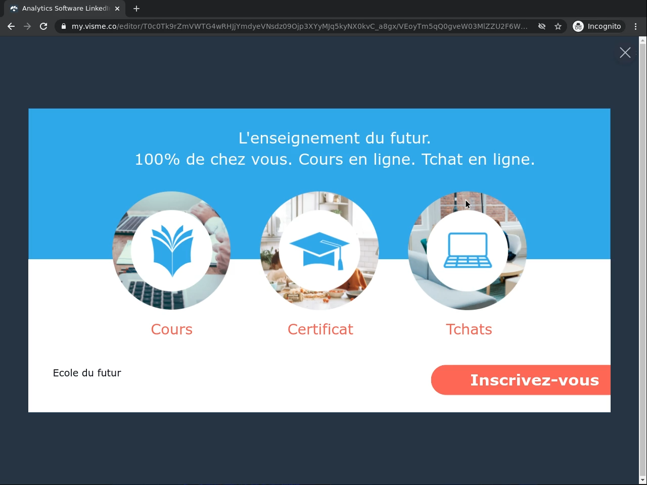 • Vous serez en mesure de créer une photo de couverture, publication et publicité Linkedin avec Visme.