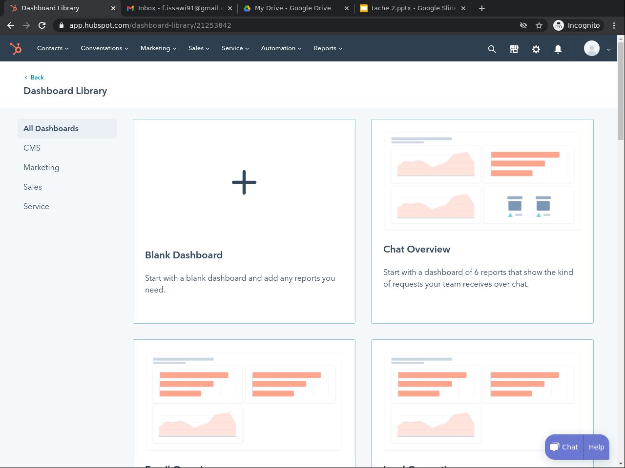 3. Création d'un tableau de bord marketing sur HubSpot.