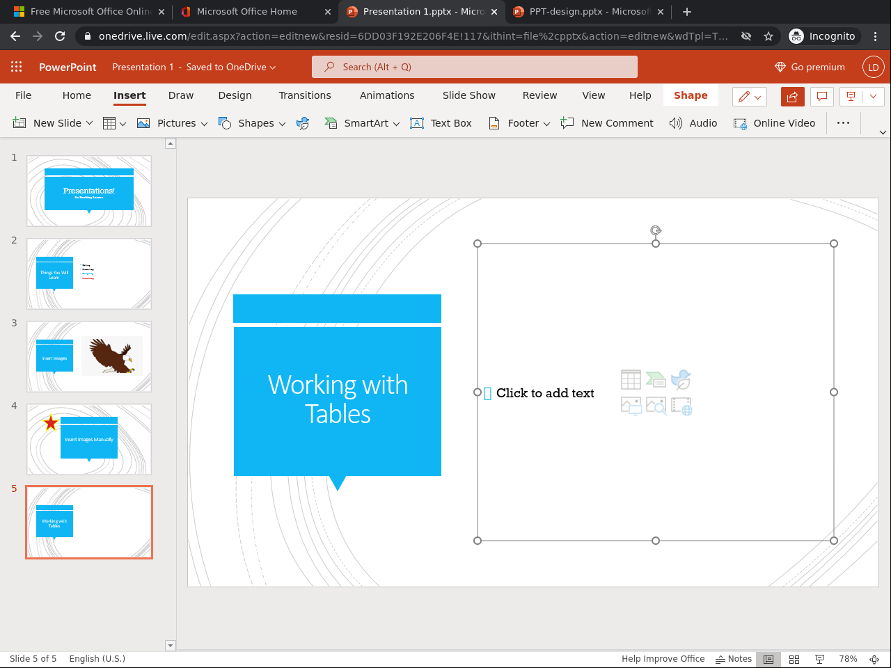 4. Insert and Edit Tables (6 min)