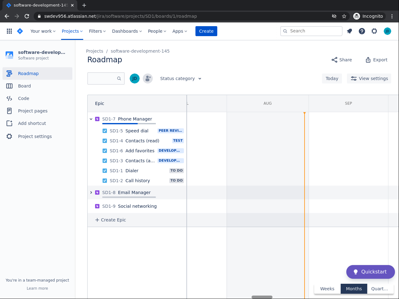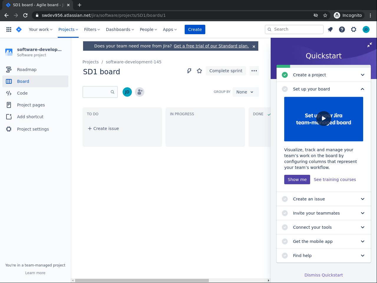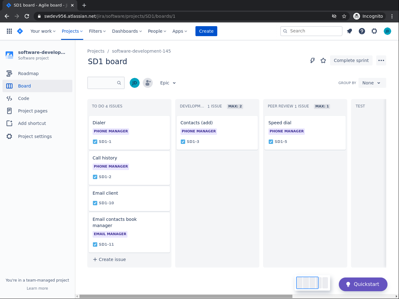 In this project you will create your first project in Jira using a Kanban board for agile methodology, creating issues, epics and tasks, setting up WIP limits, building a roadmap sharing work with team members and managing the workflow with transitions.