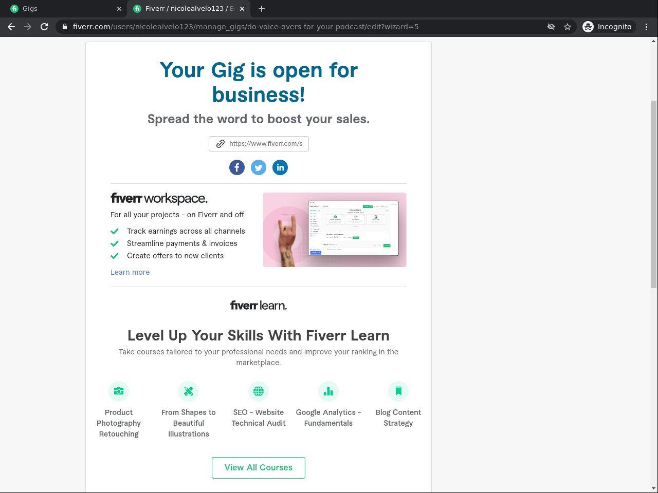 • Create your first Gig with Fiverr.