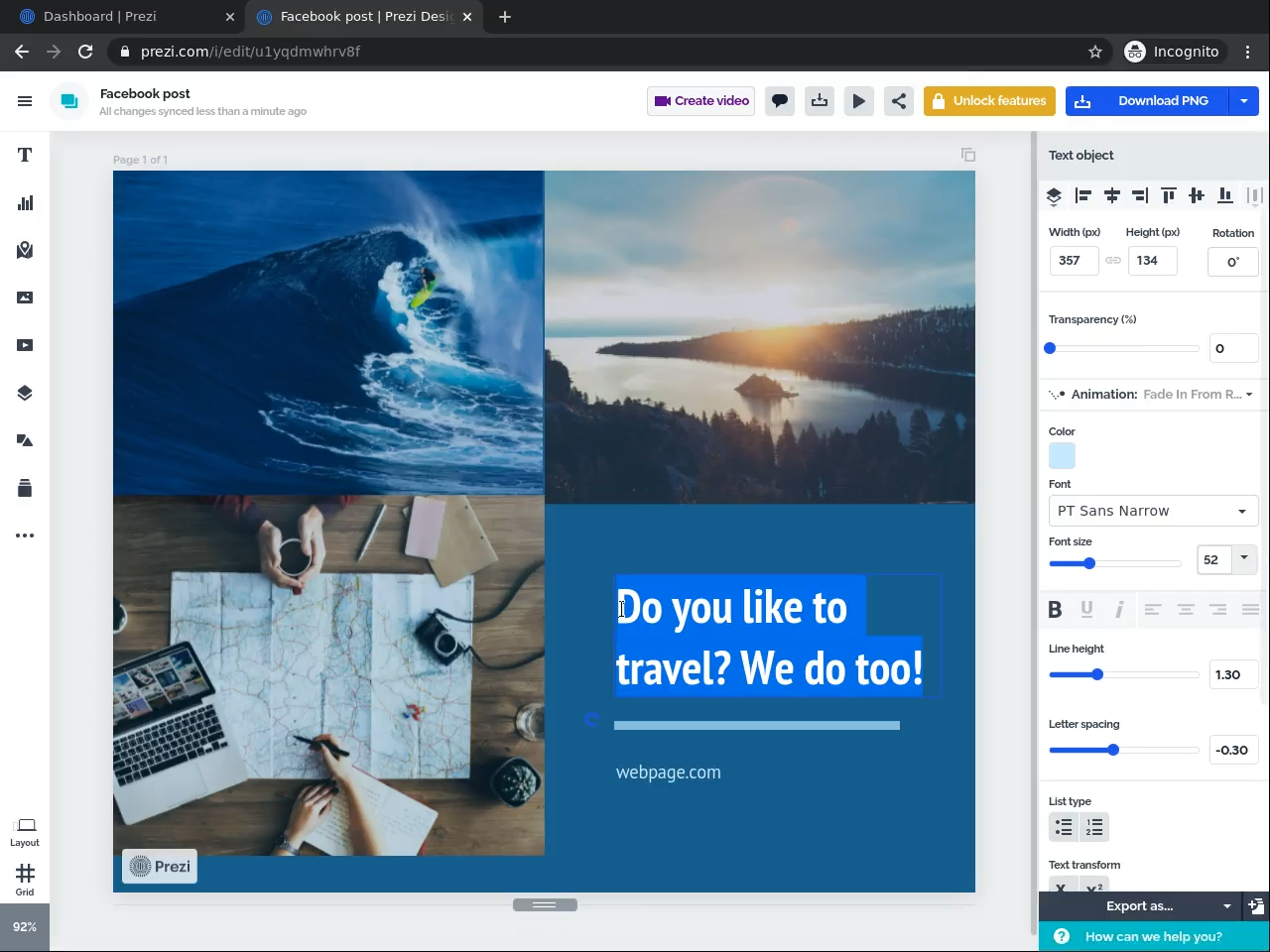 Design posts for your social networks with Prezi