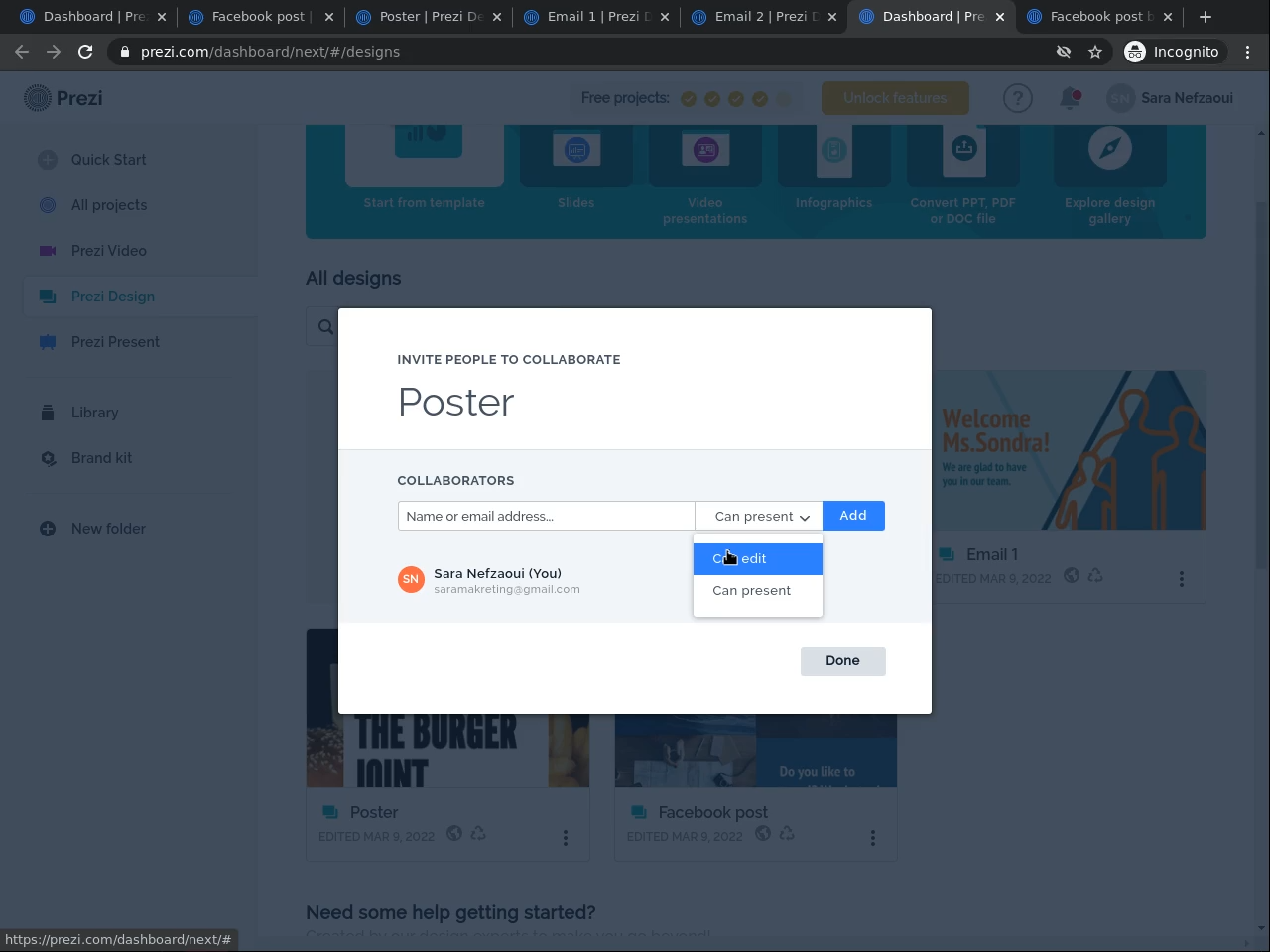 Create an account on Prezi