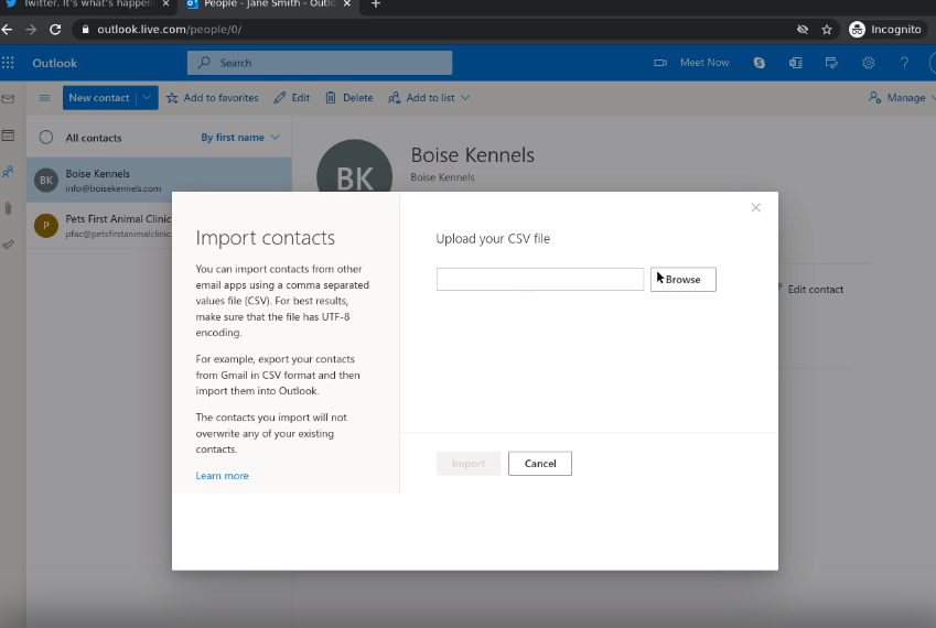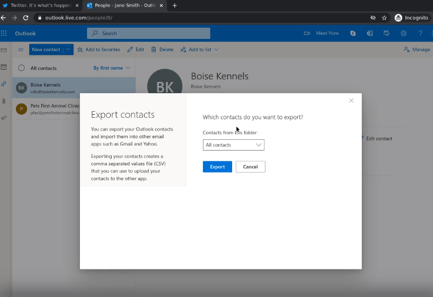 Download existing client email addresses to a CSV file from Gmail and then Outlook accounts