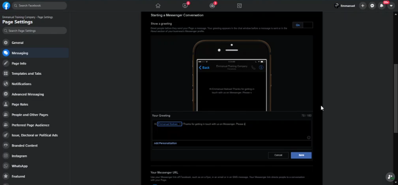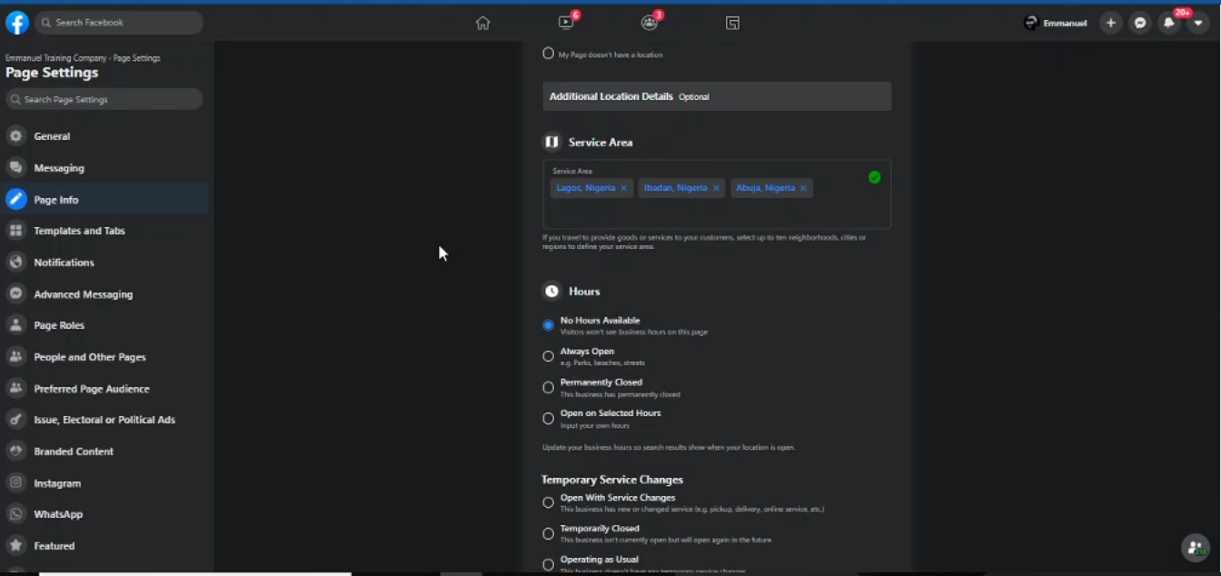 4. Add first post, Instagram handle and WhatsApp number to Facebook