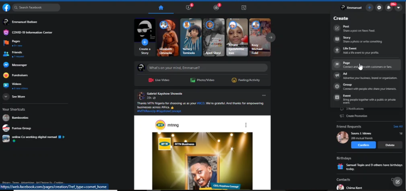 1. Create a Facebook page with descriptions, profile picture and a cover photo