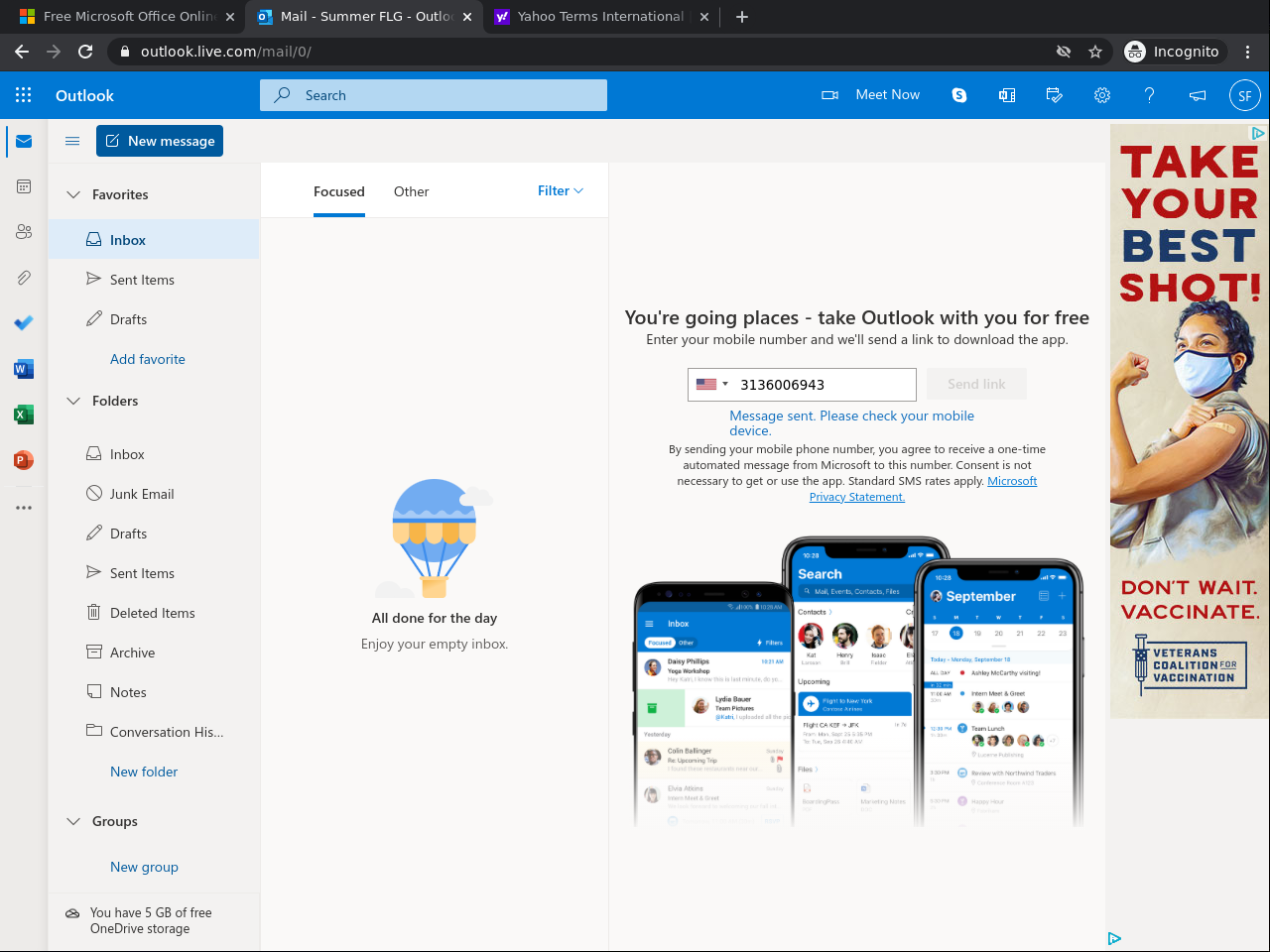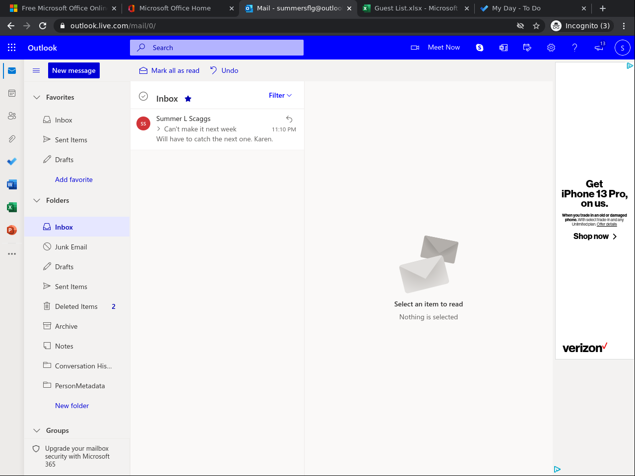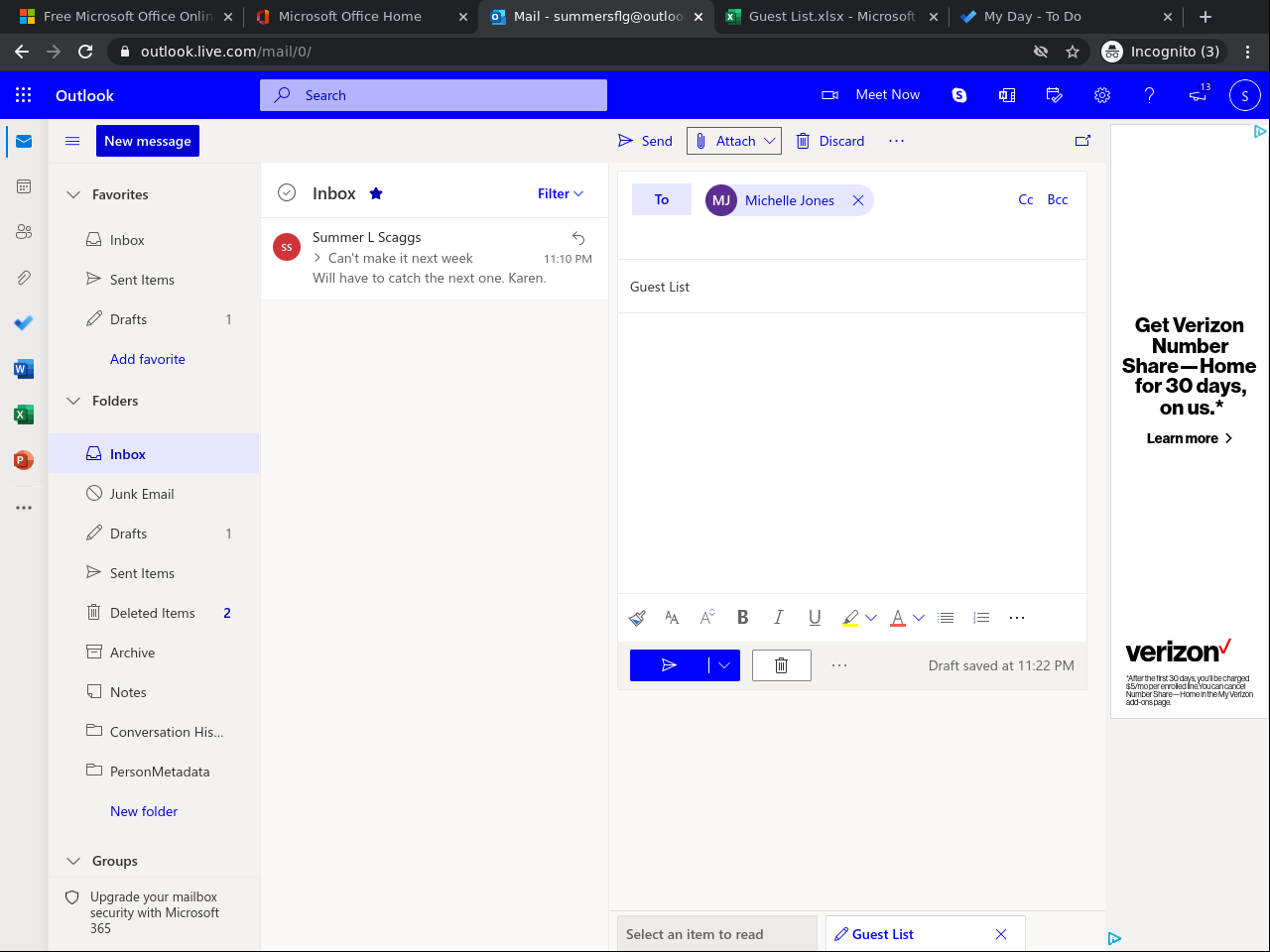 Download Mircrosoft Office365 Outlook program and go over basic view.
