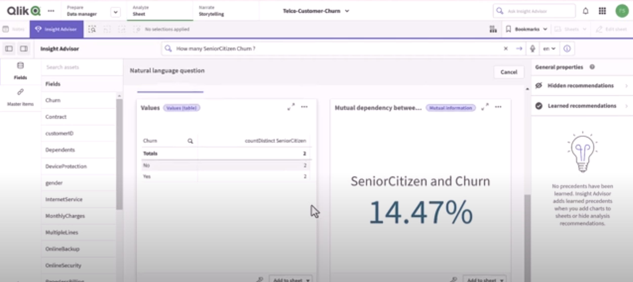 4. Practice Task 1: Creating Tables and Charts to Analyze Customer Churn in Qlik Sense