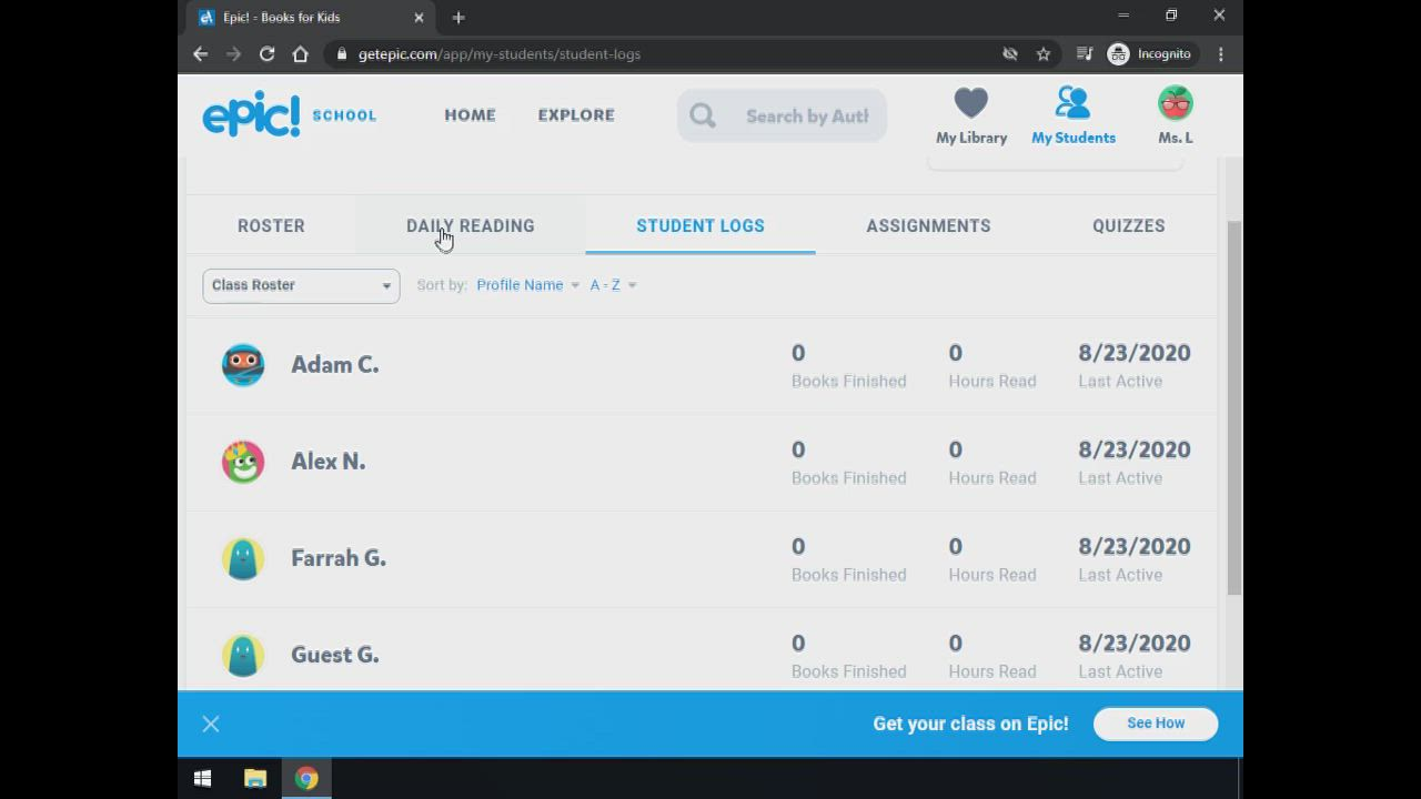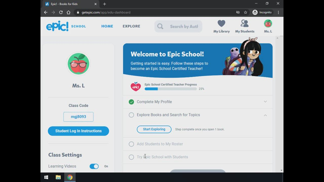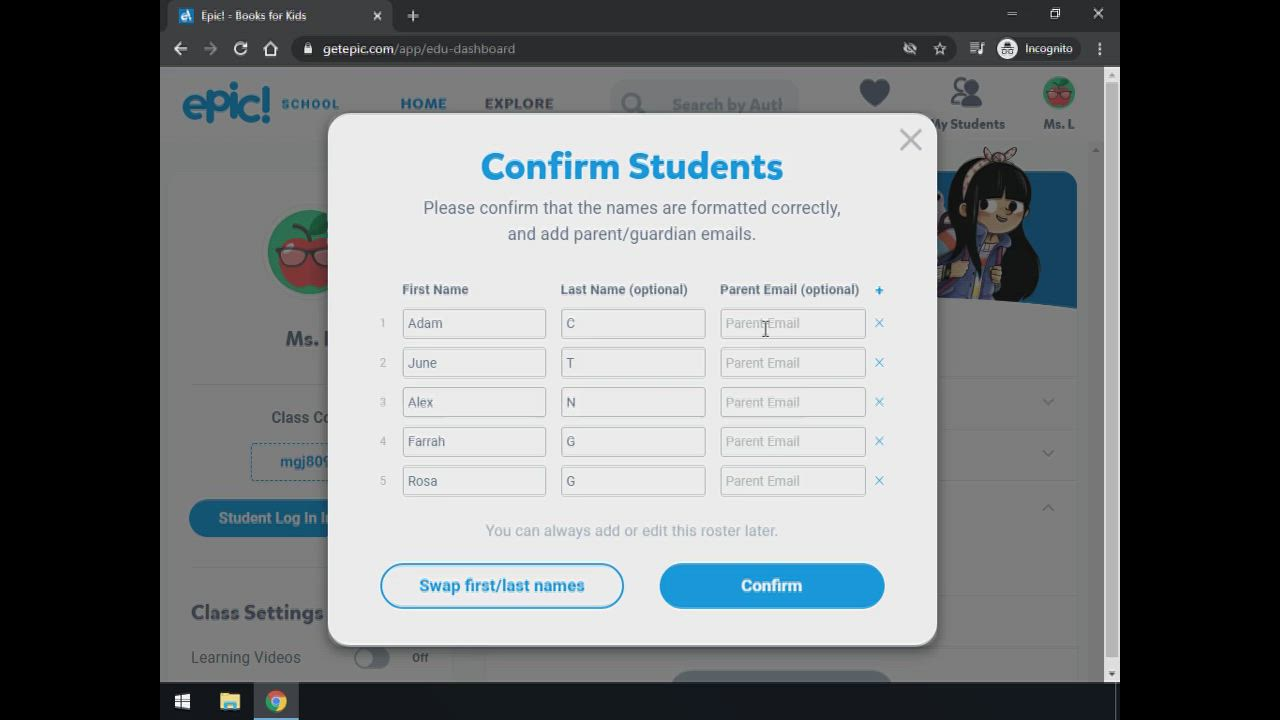 2. Add students to EPIC and adjust classroom settings. (5 min)