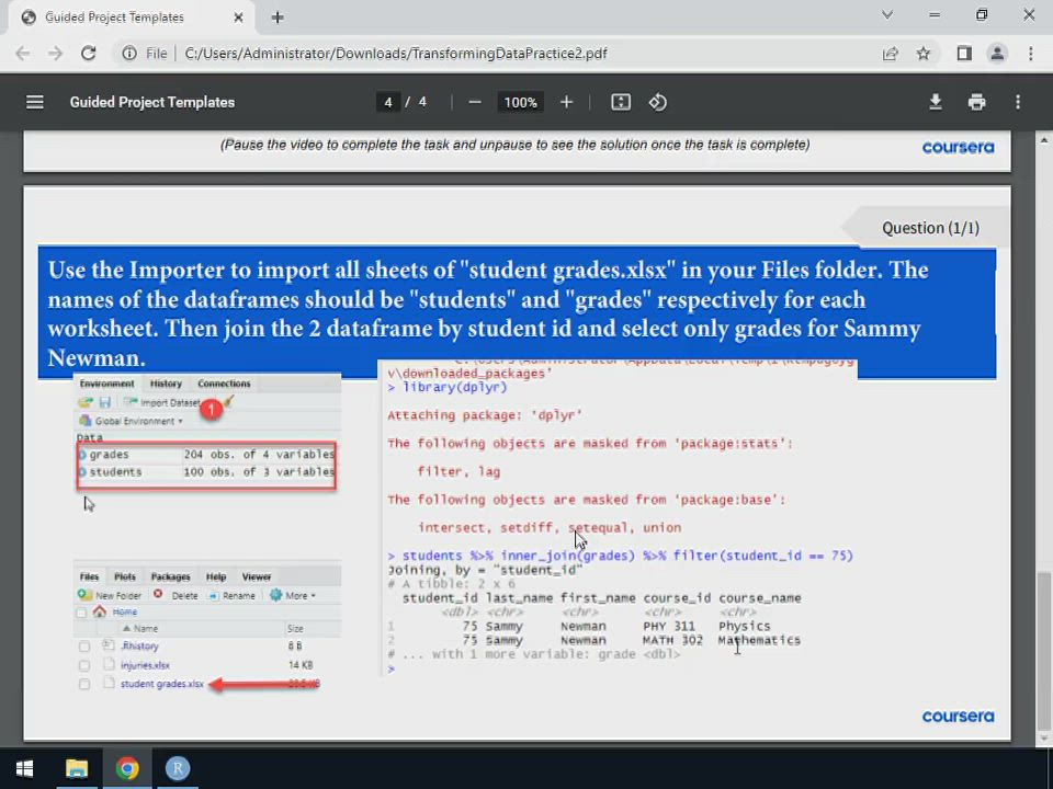 In this 1-hour long project-based course, you will learn how to pivot data into wide and long format, split and combine cells and columns, handling missing values, select groups of observations and variables, and join data from different tables.