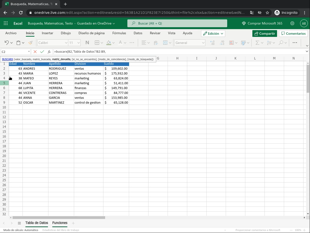 Crea una tabla de datos utilizando ALEATORIO.ENTRE y haz búsqueda con BUSCARX en Microsoft Excel