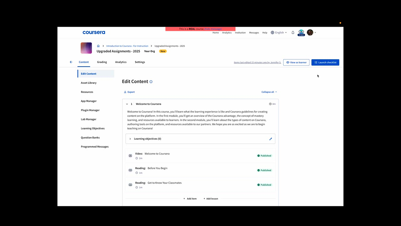 In this 1-hour long project-based course, you will learn how to version a course on Coursera while being able to customize and launch your own course version in real time.